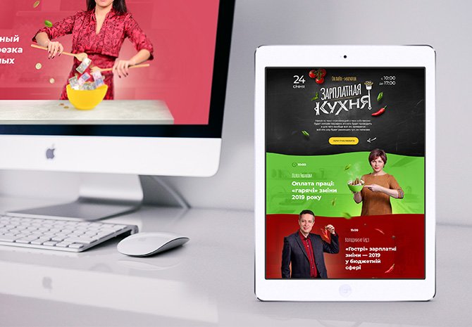 Этого не было в брифе, но в соответствии с форматом мероприятия и различными маркетинговыми активностями мы решили, что вебинар должен иметь фирменный стиль, который раскрывает основную идею. «Зарплатная кухня» – это словесная игра, которая привлекает аудиторию как к профессиональным, так и к развлекательным контентом – зарплата – «самая популярная» тема в бухгалтерии, а кулинарные шоу – самый популярный телевизионный формат нашей аудитории. Поэтому мы объединяем их во всеобъемлющем и немного нахальном логотипе.